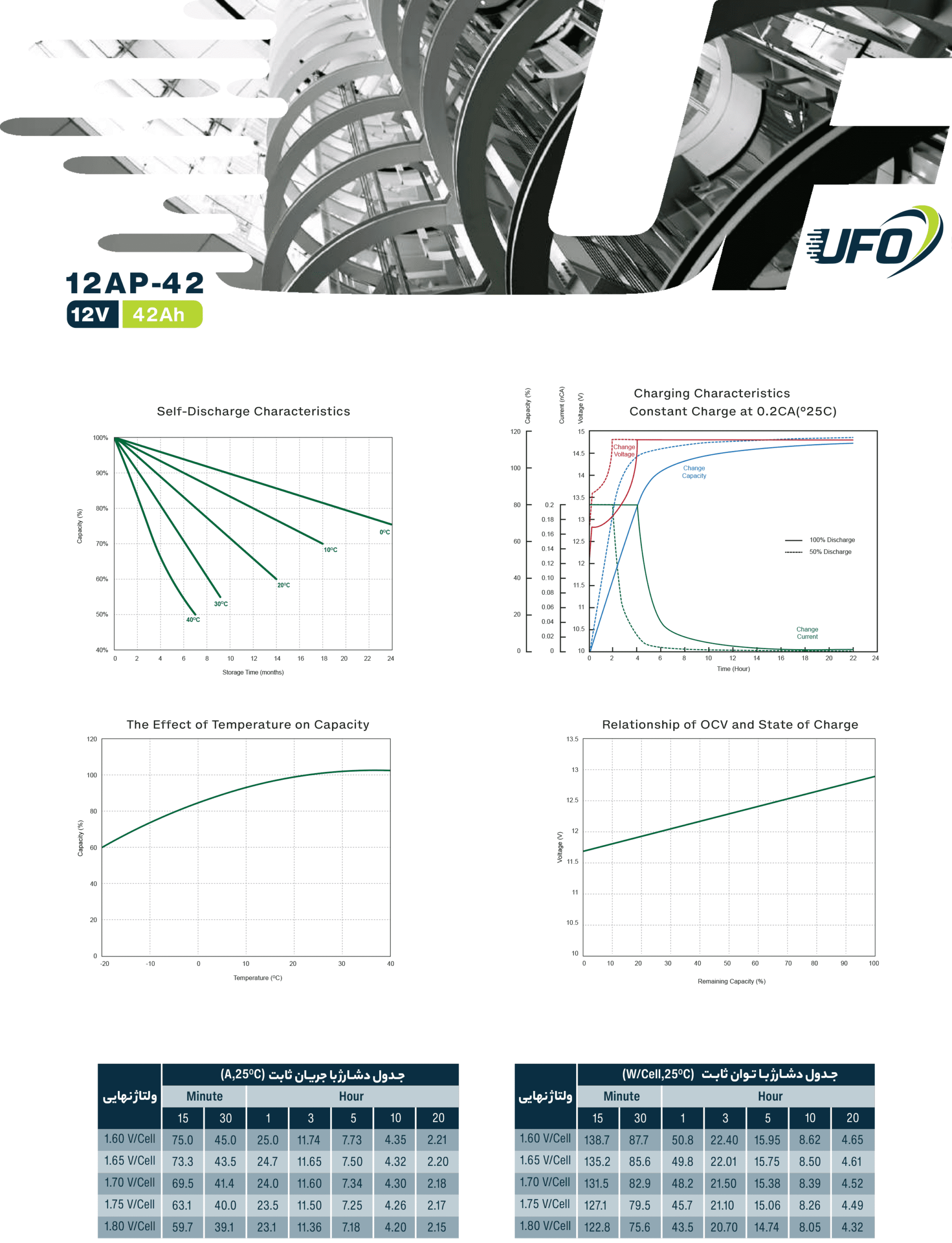 باتری سیلد اسید ۱۲ ولت ۴۲ آمپرساعت UFO یک باتری خشک (Sealed Lead Acid) با تکنولوژی AGM است که برای تأمین برق اضطراری و پشتیبانی تجهیزات الکترونیکی و صنعتی طراحی شده است. در این باتری، الکترولیت بهصورت جذبشده در صفحات داخلی نگهداری میشود که از نشت اسید جلوگیری میکند و ایمنی و طول عمر طولانی باتری را تضمین میکند. طراحی کاملاً پلمپ (Sealed) باعث میشود نیازی به افزودن آب مقطر یا نگهداری دورهای نباشد و عملکرد پایدار و مطمئنی ارائه شود.ظرفیت ۴۲ آمپرساعت در ولتاژ ۱۲ ولت، زمان پشتیبانی طولانیتری برای UPSهای متوسط و بزرگ، سیستمهای دزدگیر و اعلام حریق، روشنایی اضطراری، تجهیزات مخابراتی و دستگاههای پزشکی سبک فراهم میکند. مقاومت داخلی پایین، شارژپذیری استاندارد و عملکرد قابل اعتماد در حالت استندبای و چرخهای سبک از دیگر مزایای این باتری است.بدنه مقاوم و ابعاد استاندارد این مدل نصب آسان در کابینتهای باتری و فضاهای محدود را ممکن میکند و آن را به انتخابی اقتصادی، کاربردی و قابل اعتماد برای پروژههای برق بکاپ تبدیل میکند.